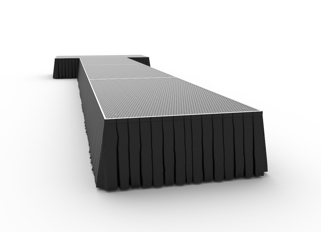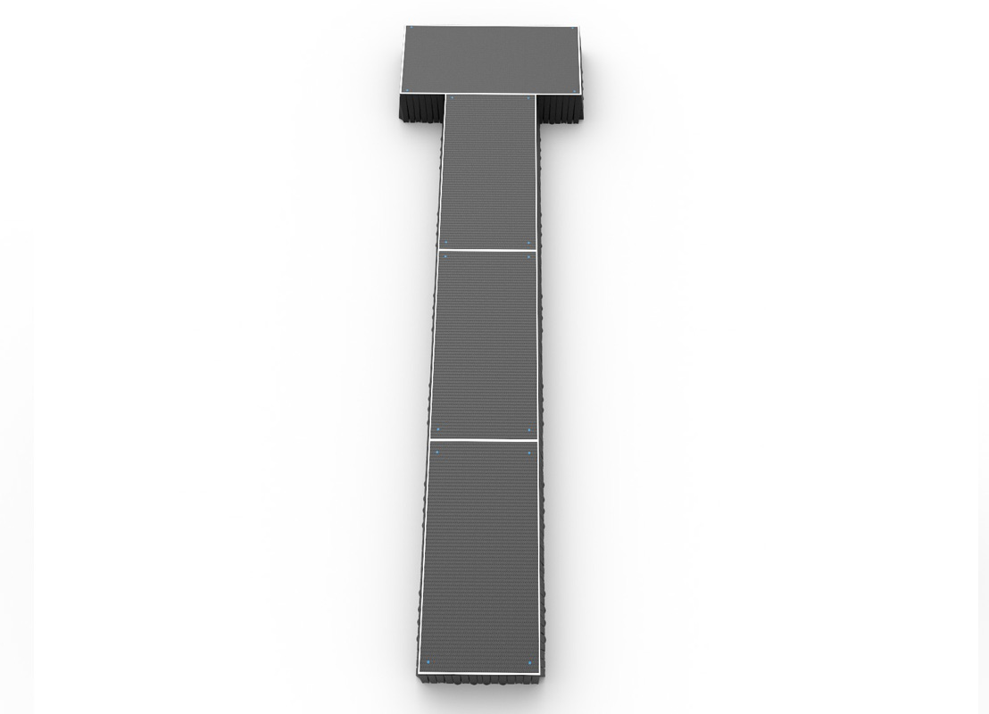 2m wide x 1m horizontal platform at rear, joined with a 1m wide x 6m deep runway – Suitable for small to medium size shows, this catwalk has a rear platform for extra promotion and style, with an extending run way leading out